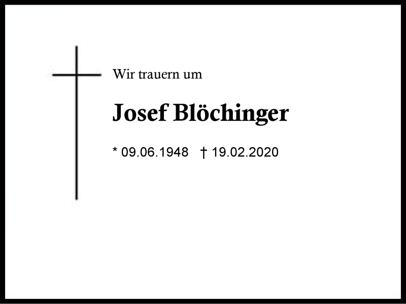 Hier finden Sie alle Traueranzeigen aus der Zeitung, die bisher für Josef Blöchinger erschienen sind. Weitere Traueranzeigen, die in der Zeitung erscheinen, werden hier ebenfalls aufgelistet